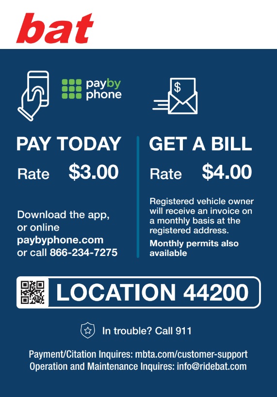 Parking fee is $3.00 daily using the paybyphone app, or $4.00 daily when you are invoiced.
